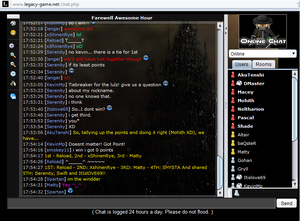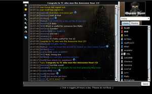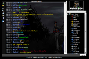 [[Awesome Hour]] first started on the 20<sup>th</sup> of | [[Awesome Hour]] first started on the 20<sup>th</sup> of June 2009 by [[User:dk16|dk16]] where he and [[User:DMaster|DMaster]] have been running them ever since. It's an event for [[Legacy|Legacy Players]] to come test their knowledge in [[Online Chat]] and earn [[Staff Favor|prizes]], [[Awesome Hour]] can be split into many categories: individual, [[Gangs|gang]], clan & teams! | ||