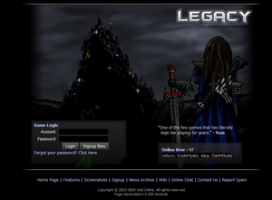 Legacy is the second version of the game, formerly known as Gangsterz 2. The game is sometimes called Gangsterz Online or just Gangsterz as the number has lost some of its meaning. Although, nominally, a newer version of the game exists, the changes have been gradual and cumulative. In other words, all versions since Gangsterz 2 - Version 2 have been one continuous incarnation since the version shifts were not marked (as were the first two incarnation of Gangsterz) by abrupt discontinuity, much like how there is no exact moment in the transition from being an adolescent to being an adult.